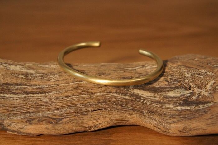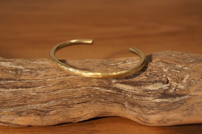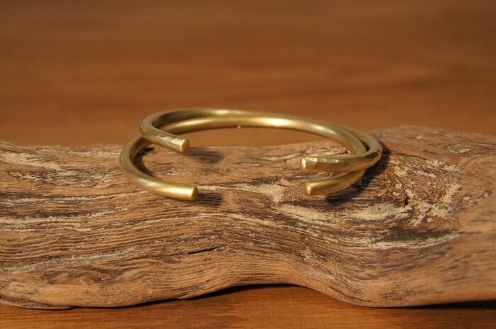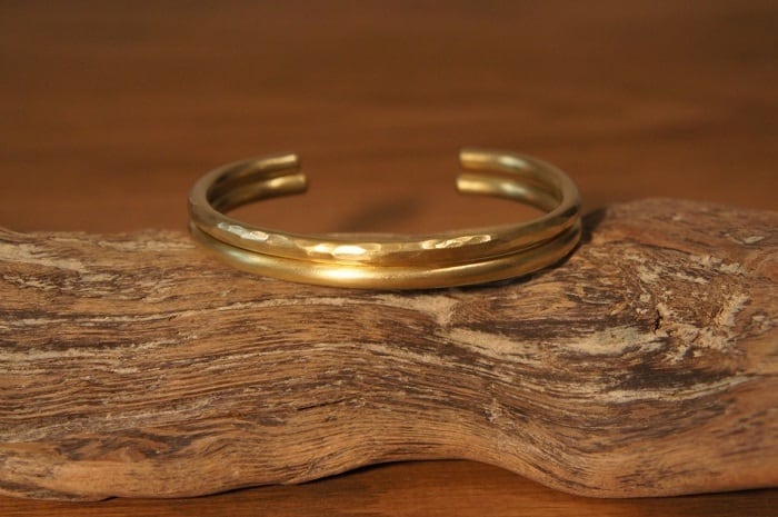 シンプルな丸線バングルと鎚目をつけたタイプの2本セットの