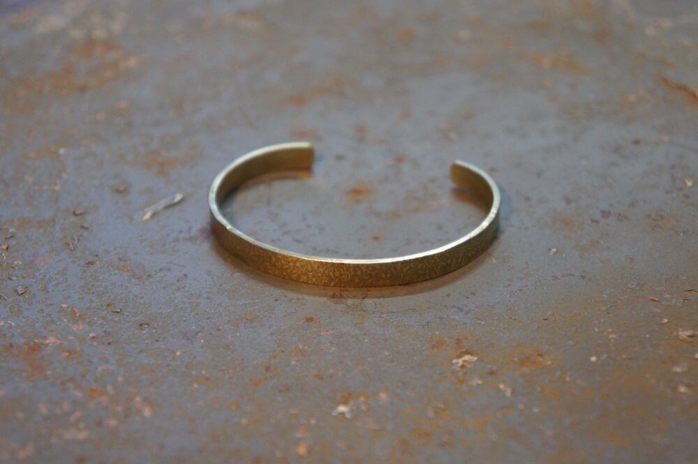 オリジナルの刻印を使ってモルタルの様な風合いに仕上げたブラスバングルです。