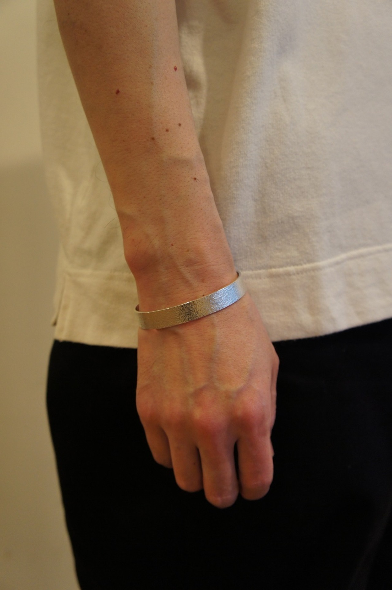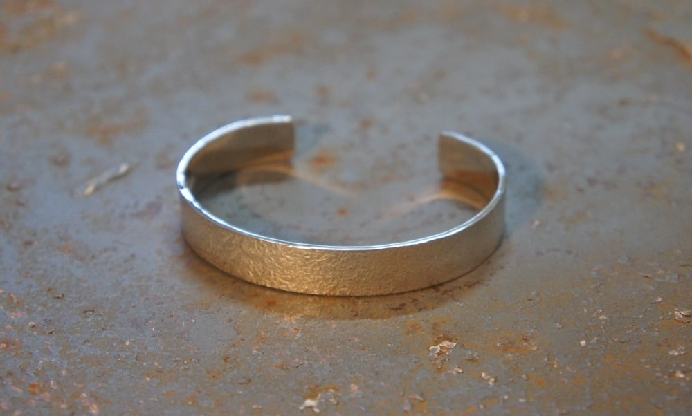 オリジナルの刻印を使ってモルタルの様な風合いに仕上げたシルバーバングルです。