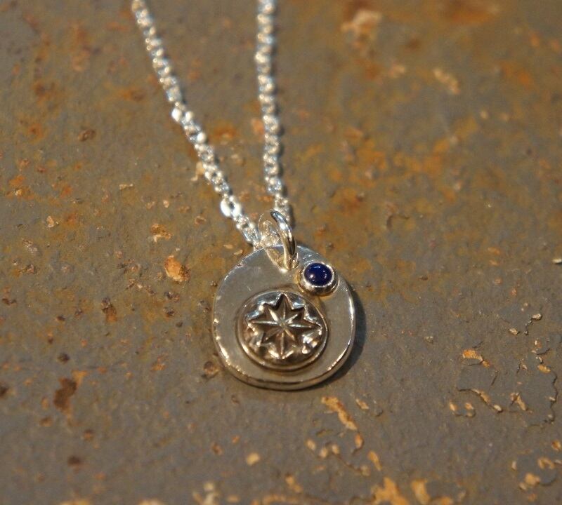 星をモチーフにしたトップにラピスラズリを付けたネックレスです。